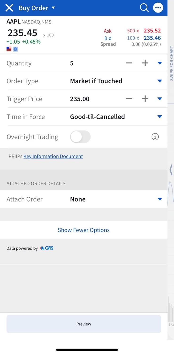- When placing a market if touched order, you agree to accept the best available price in the market at the time of execution.